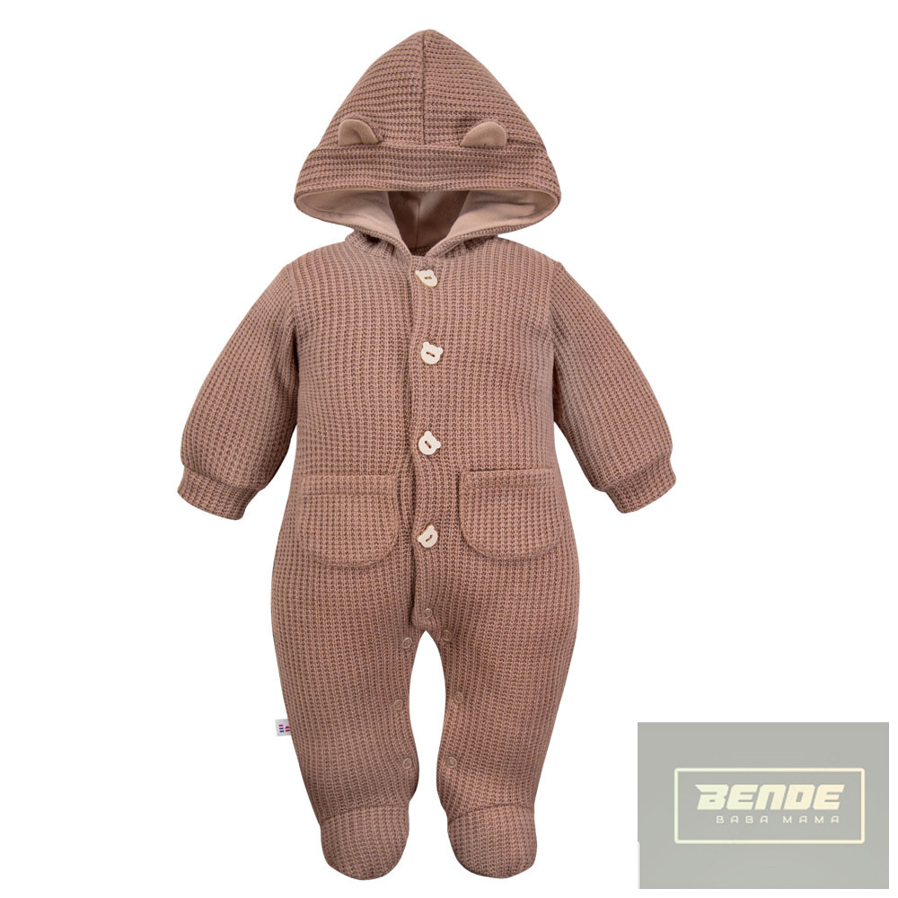 EEVI Cool Beary kisfiú kötött,kapucnis overál-barna